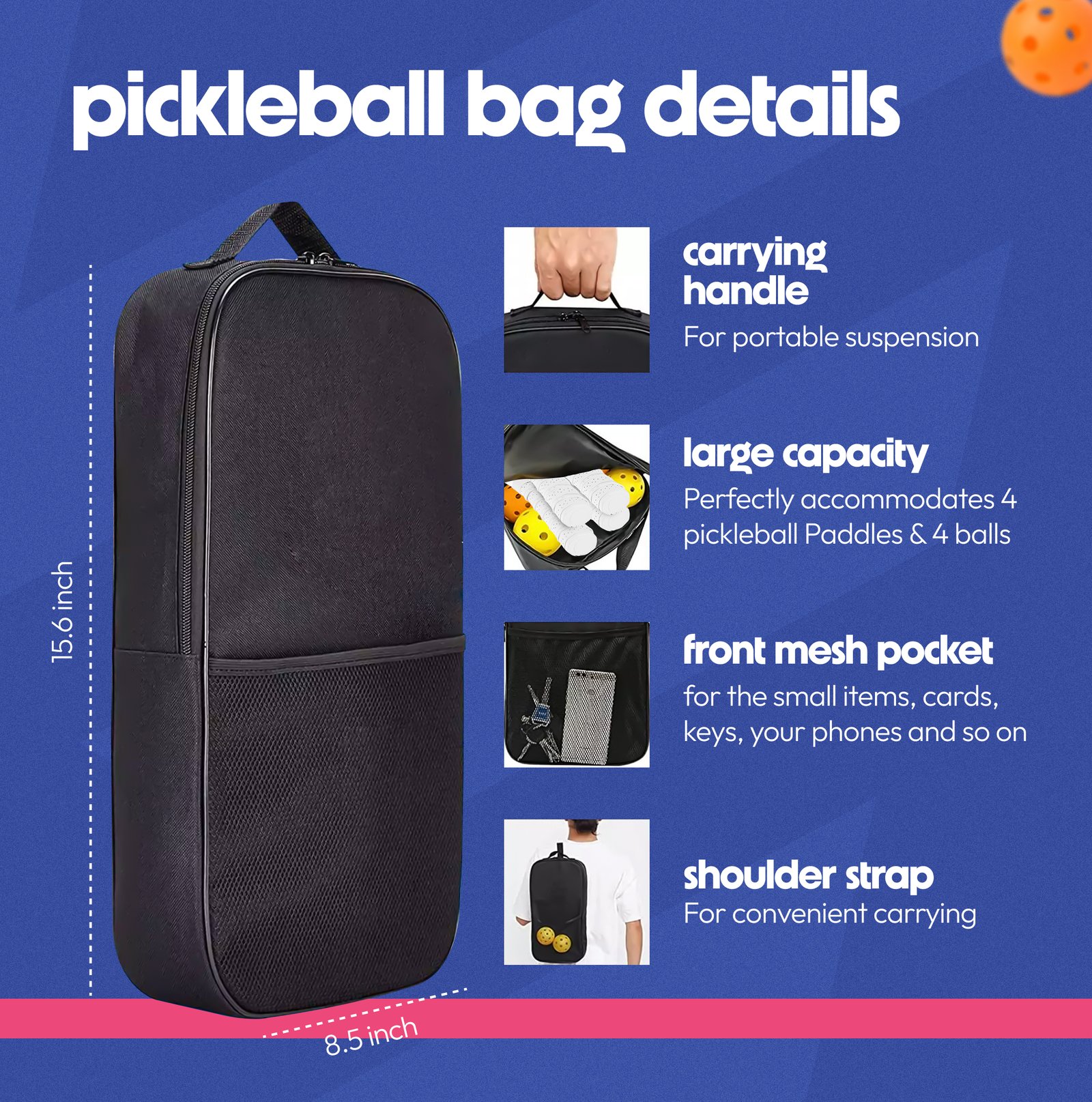 - Easy Transportation: Features comfortable straps for easy carrying to and from the court, leaving your hands free.