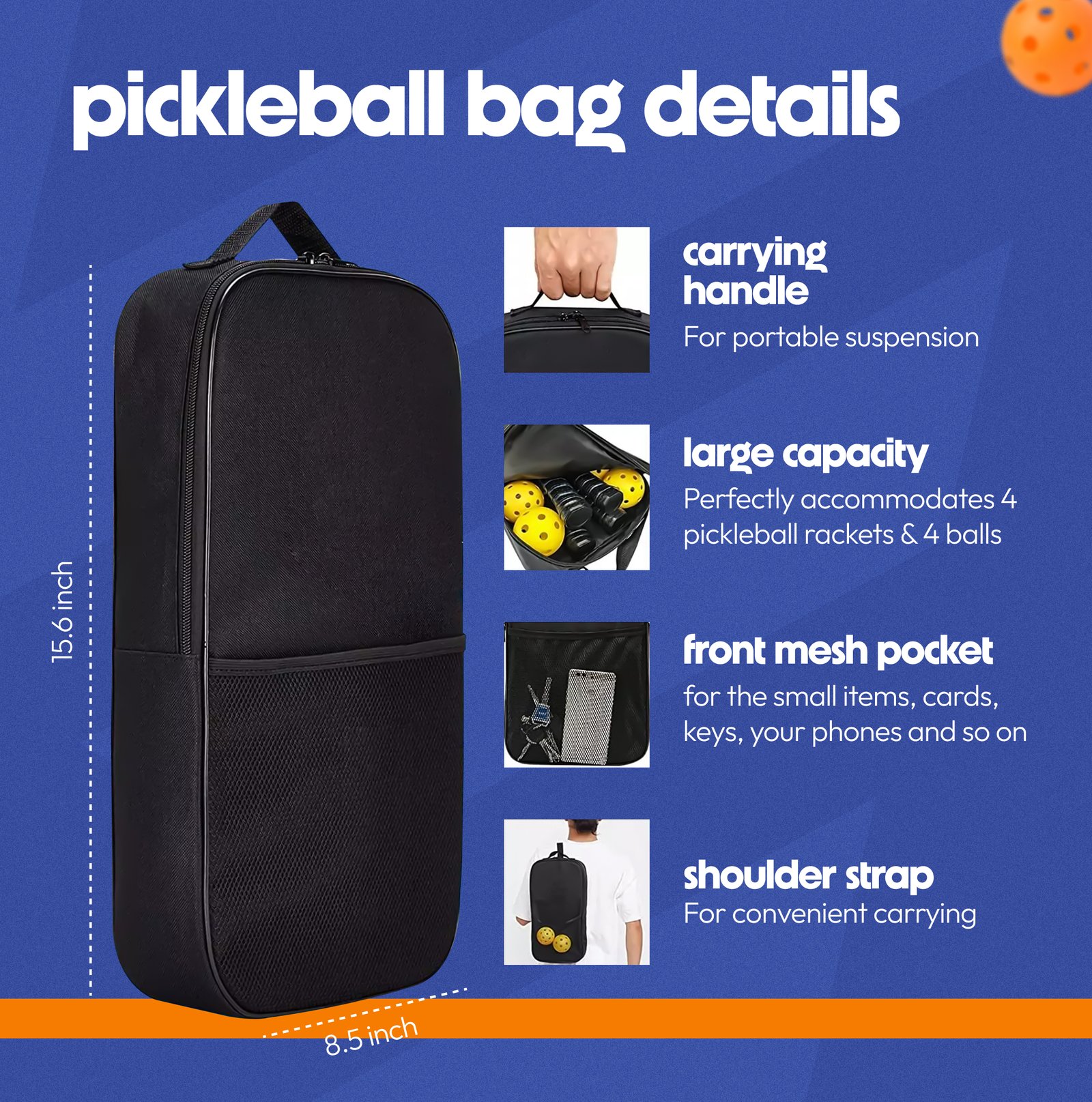 • Easy Transportation: Features comfortable straps for easy carrying to and from the court, leaving your hands free.